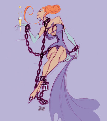 Attention, Enfin, dans la galaxie des héros fluidiens, une femme qui n’est ni dans les ordres ni du 3ème âge. Le major Melody Bondage du SAS (Speed Agression Surprise) est une femme de choc. Car dans Bondage il y a Bond, une filiation qui ne peut nier cet agent au service de Sa Majesté, en lutte contre les pires vilains de la guerre froide. Mais dans Bondage, il y a aussi cuir, et Melody n’est jamais aussi attachante que lorsqu’elle est ligotée, c’est-à-dire dans chacune de ses aventures. Pourtant, même attachée elle n’est pas soumise, sachant remettre à leur place les machos qu’elle croise dans son combat contre le mal.